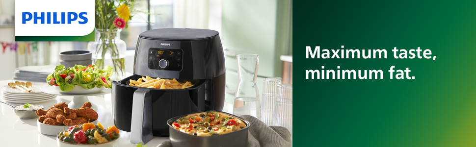 The Philips Airfryer XL is a smart and connected kitchen gadget that can be accessed using the Nutri U app. The app can be used to start a healthy eating journey. This is also an Amazon Alexa-enabled air fryer that uses innovative and impressive Rapid Air technology for healthy frying. It keeps the food warm, fried, bake, grilled, roasted, and even reheat. It has a 1.2 kg capacity basket, combined with the 6.2L pan, and at once, it can make up to five meal portions in one go.