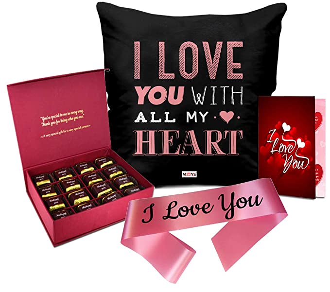 Handmade Chocolates, Printed Cushion, I Love You & Greeting Card