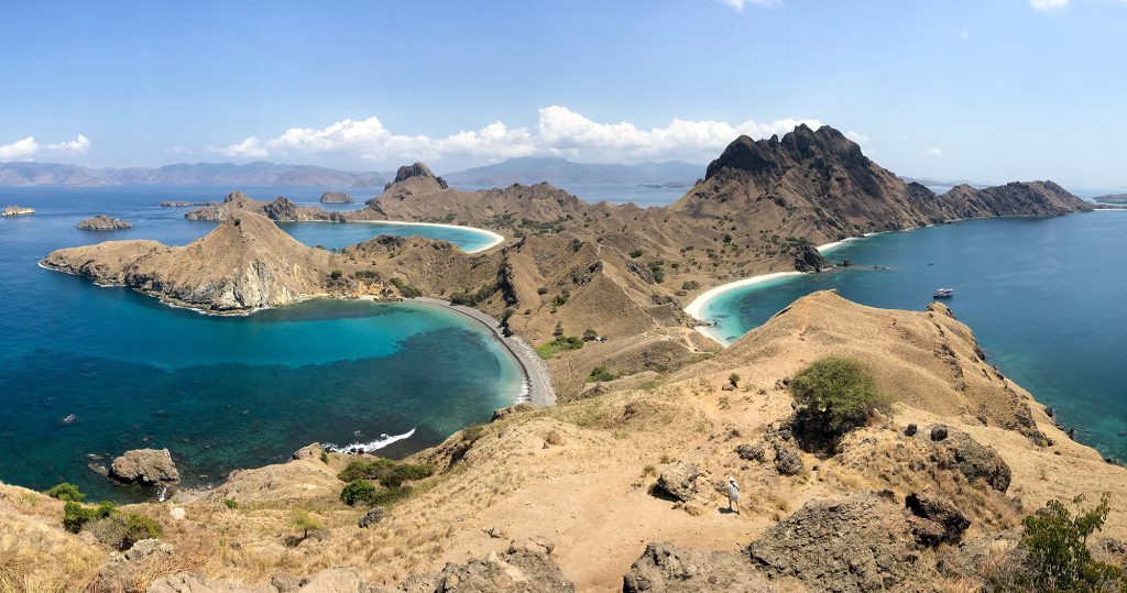 Komodo National Park is a UNESCO World Heritage Site located in Indonesia. It is home to the Komodo dragon, the largest living species of lizard, as well as a variety of other animals and plants. It is one of the best tourist places to visit in Indonesia. The park consists of three major islands, Komodo, Rinca, and Padar, as well as over twenty smaller islands. It is a stunningly beautiful area with diverse habitats which range from tropical rainforest to savanna grasslands, coral reefs, and rugged hills.