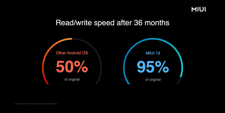 The file storage system is optimized after MIUI 13 update. It is very faster and smoother than MIUI12.5. Additionally, with Liquid Storage, MIUI 13 helps devices retain up to 95 percent of the read and write speeds even after 36 months compared to other Android OS. MIUI 13 offers a new system-level method of managing the ways files are stored on devices.